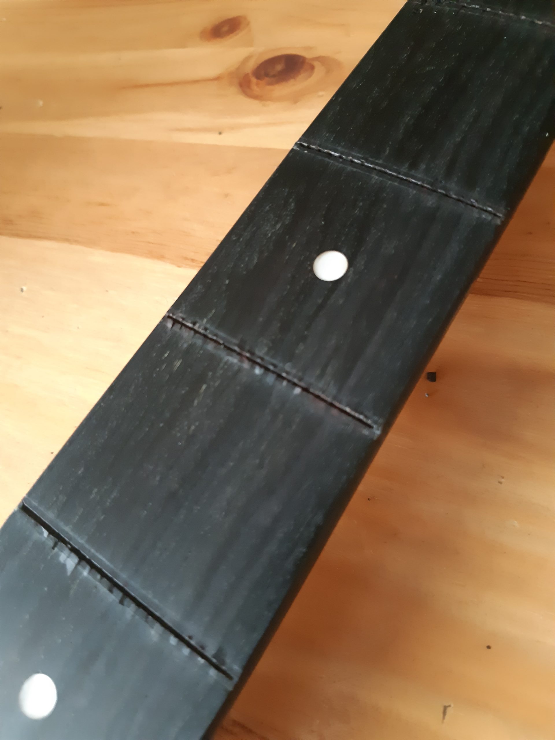 Poco a poco vamos retirando los trastes, si hay algo astillado, lo pegamos con cola blanca, no conviene perder estas astillas.