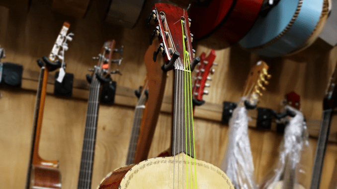Se suele afinar una quinta por debajo de la guitarra (A1 D2 G2 C3 E3 A2, de grave a agudo). Nótese que la afinación de la primera cuerda es más grave que la de la segunda, es una afinación reentrante. Las cuerdas graves suelen ser de nylon con entorchado metálico y las agudas, de nylon, bastante gruesas.